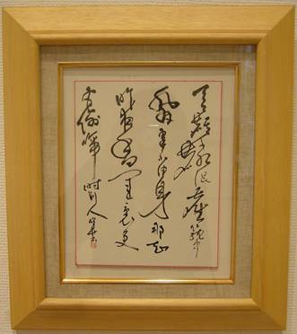 下の写真は、私の恩師であり東北書道展審査員の小野寺峰秋先生の作品です。文字の形や線のつながりは洒脱でまさに名人技。文字が踊っているかのようです。