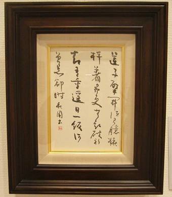 次の写真は、同じく私の恩師であり東北書道展審査員の小野寺秋園先生の作品です。ふとあたりが静寂に包まれ、心が洗われるような印象です。墨色が大変美しく水墨画を見るかのようです。